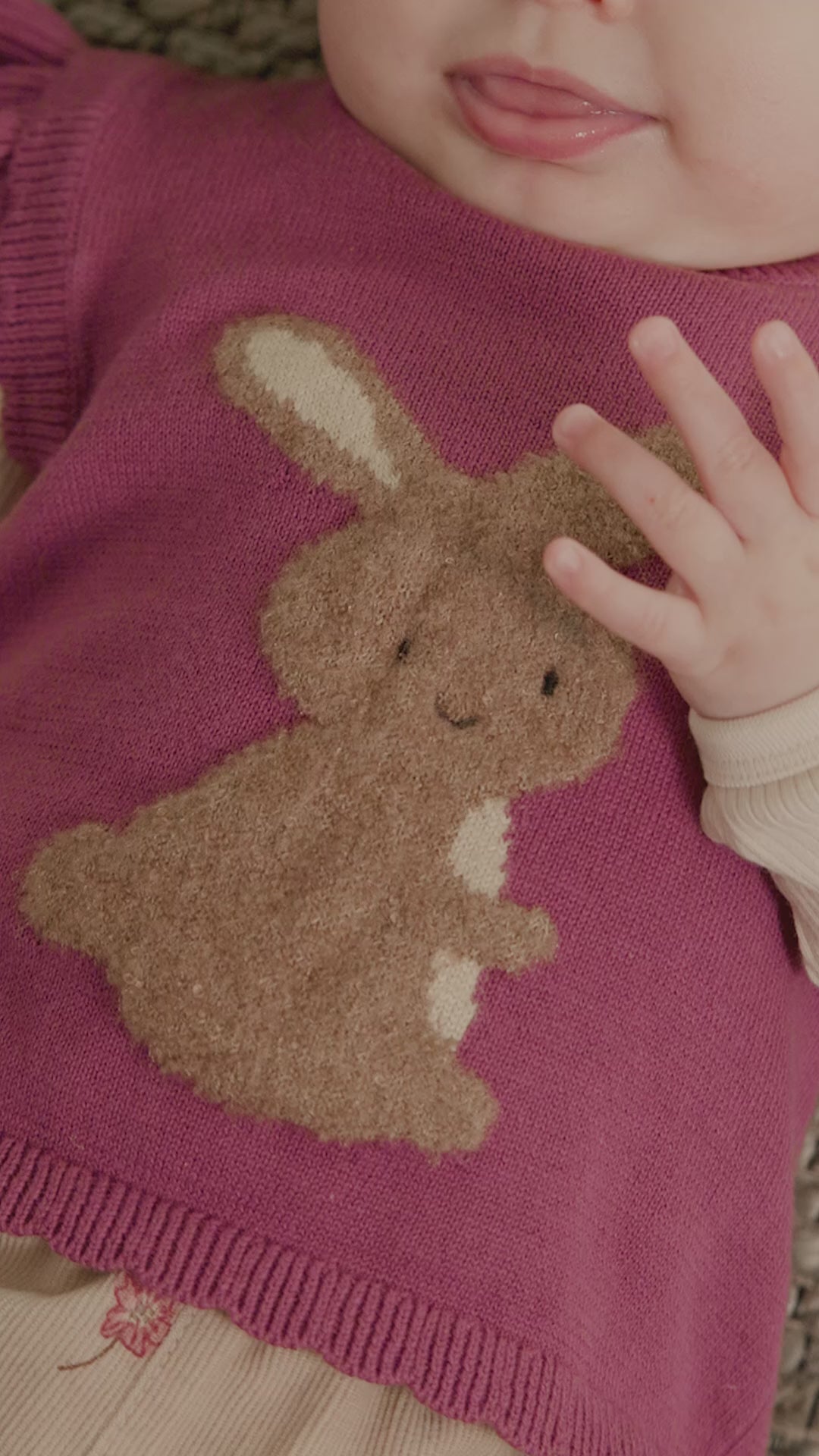 Minymo "Pullunder" mit Häschen-Stickerei und Volantärmel - Withered Rose